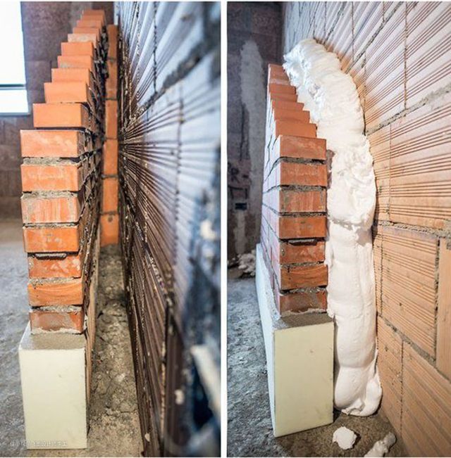 而国外的这种操作方法却完全不同,他们在砌墙时会在墙面打孔,这些孔可不是随机排列的,而是在仔细分析墙面之后再选择在何处打孔,然后在一根管子插入这些孔中,将泡沫填充进去(将墙壁内填充均匀),操作起来其实比较麻烦,比如有些管道的区域就很费时间。