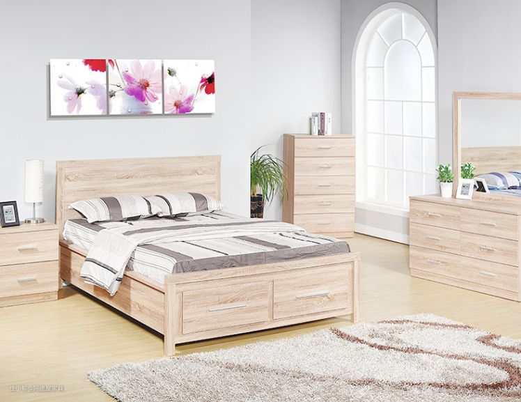 1、床:选购床时要注意其尺寸,如果卧室比较小,最好不要买1.8m的床,其次要看床的高度是否合理,太低不利于通风和床下清洁,太高则不利于上下,而且不是很安全。