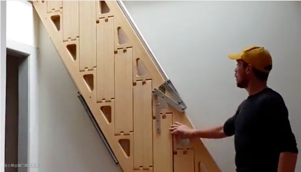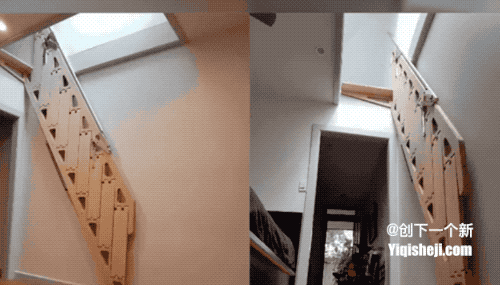 Hybrid Stairs又叫靠墙折叠楼梯,不用的时候把楼梯折叠起来,紧贴在墙上,使用的时候,拉下来即可,不占用任何空间↓↓↓