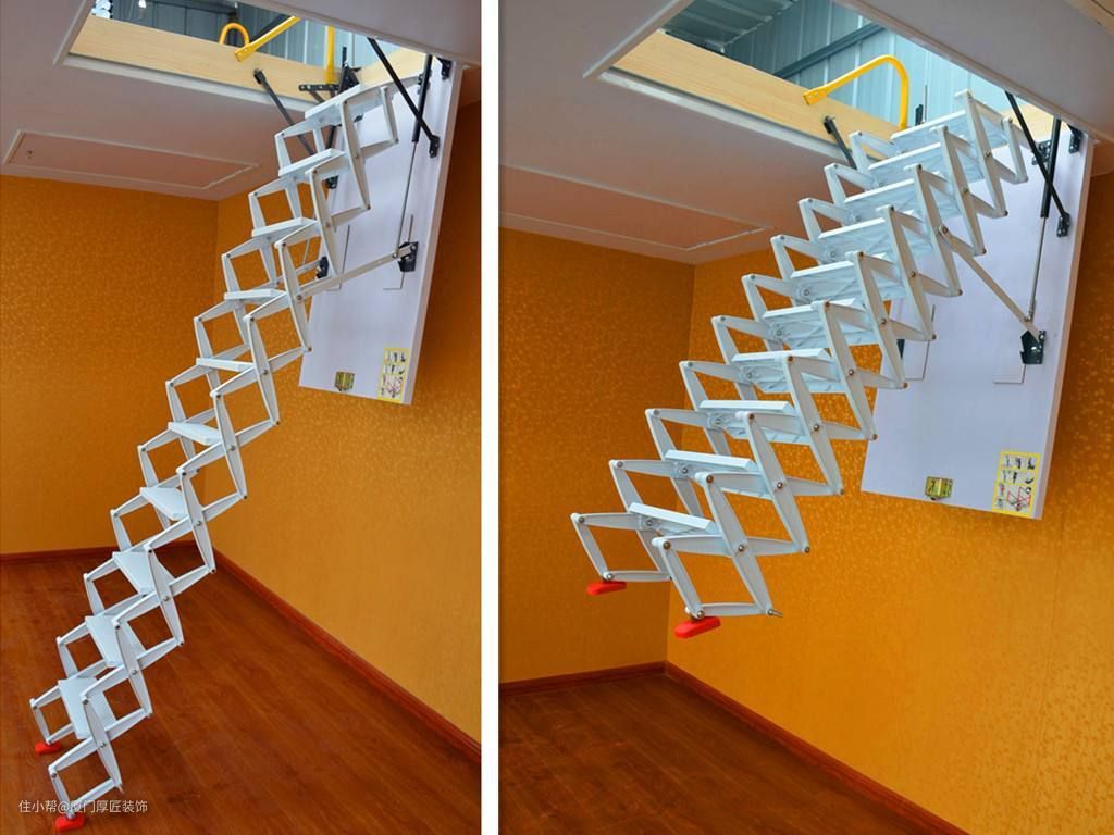 另外,说到阁楼的楼梯问题,比较流行还有这款隐形升降伸缩楼梯↓↓↓