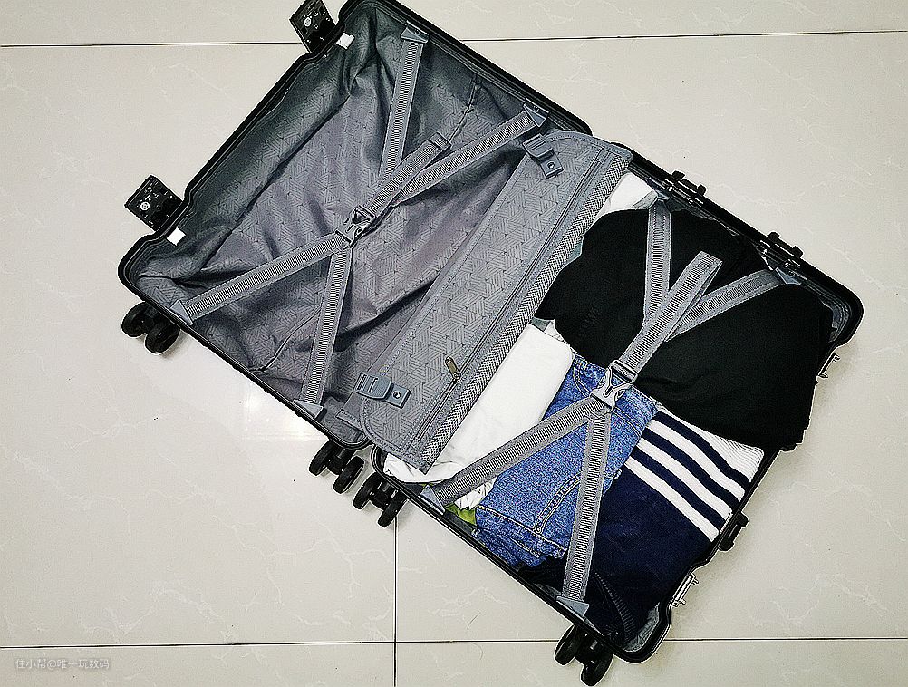 通过实际体验,锦囊北极光铝框拉杆箱可以放置(裤子、半袖等衣服)近12件,旅行更换有保障。