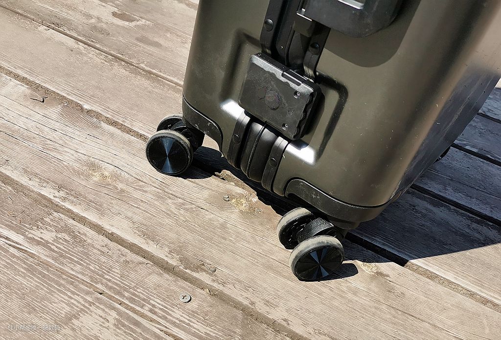 而且轮子在材质的选择上也十分用心,升级为轮胎材质,选用柔软度和耐磨性更优的TPE材质,这样即使用户在粗糙的路上推动行李箱也能降低分贝,推行自如。