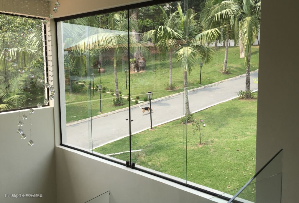 说到无框窗,直白的理解就是没有框的窗,有些人认为无框窗全部由玻璃构成,没有轨道。这里需要普及一下:无框窗除了钢化玻璃为主要构成,上下还有承重横梁,左右还有固定边框,但是远观边框不明显,所以可以忽略不计。