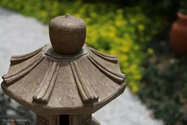 不管走到哪里,景观小品都是景观设计中的点缀元素,日式风格特别能与大自然融为一体,借用外在自然景色,为室内带来无限生机,选用材料上也特别注重自然质感,以便与大自然亲切交流,其乐融融。比较常见的材质有石质和竹质。