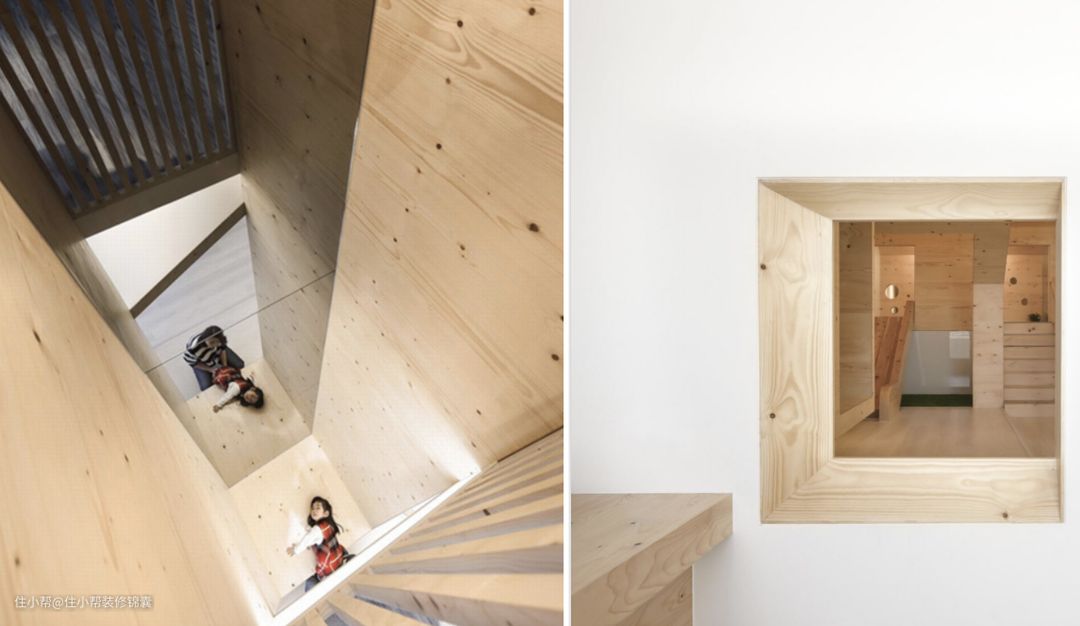 考虑到空间利用率,楼梯空间通常采光没有那么好,那么可利用梯间造型,创造出趣味的空间,改变楼梯本身无聊的结构,也是可遇不可求的设计。