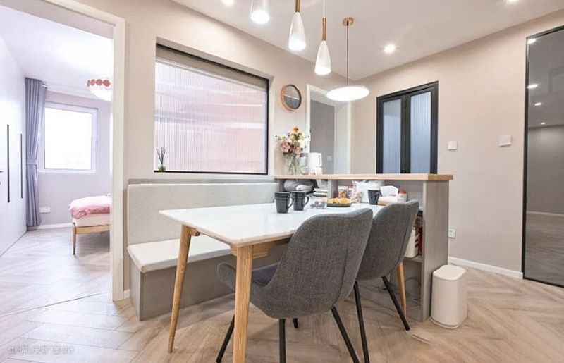 表妹家装修好也有一段时间了,本来定好的年后去参观她的新家,然后借鉴下装修经验,这样我家年后装修时就不是小白一个。但是现在不能出门,表妹就在视频里跟我介绍了她家。表妹说家里装修好也住了一段时间了,觉得最不错的设计就是她家将餐厅的卡座和吧台做成一体式的。一家人吃饭时幸福感都提高了,实用性翻倍,一般亲戚她都不分享,怕别人眼红!