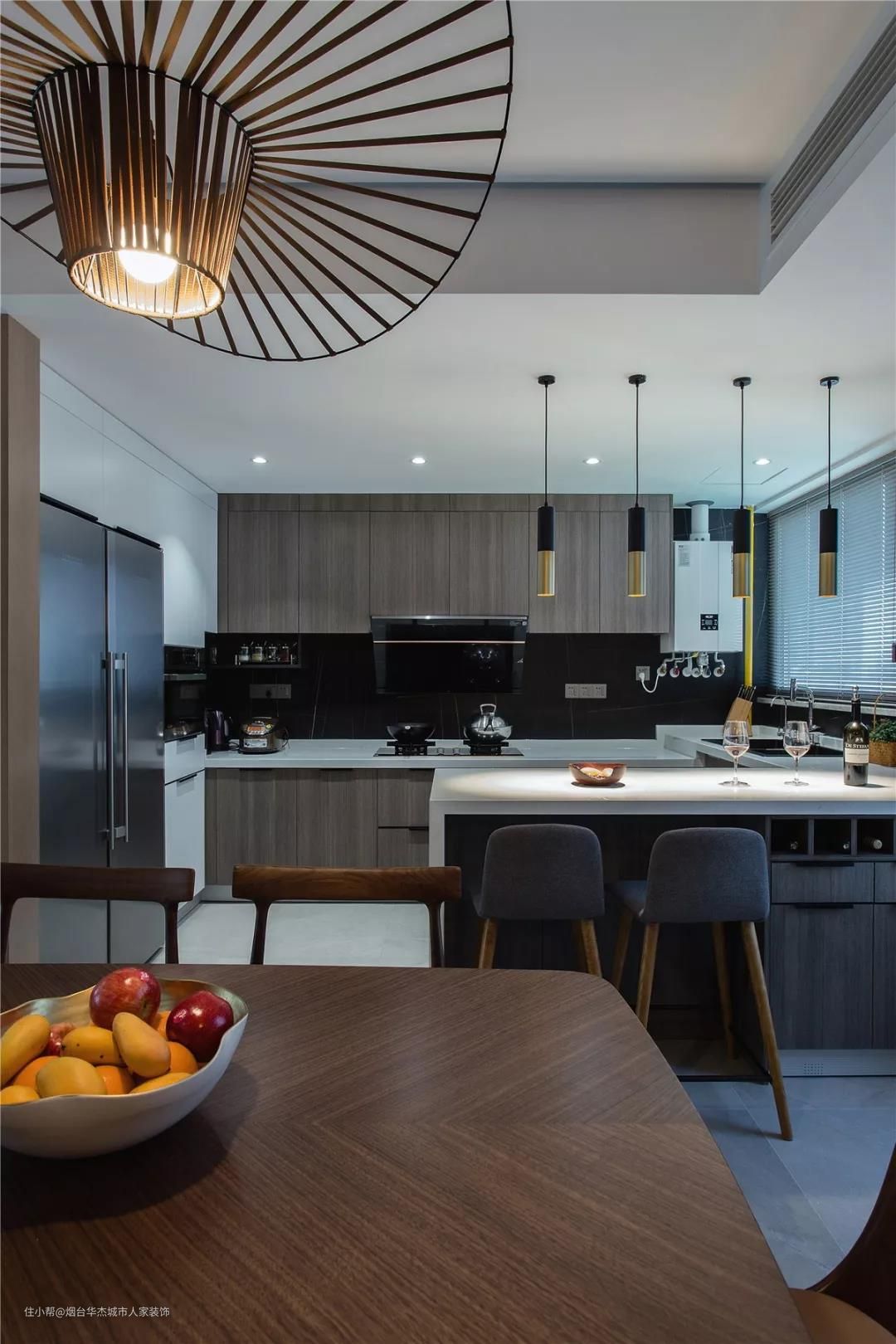 开放的中西厨和餐厅空间融会贯通,兼顾功能与美学。