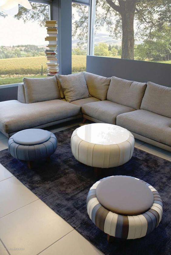 家里不缺茶几,不妨拿来改成小沙发吧!像下面这种就比较固定了,不过个人建议最好不要使用毛茸茸的布料,招灰惹尘,光清洗都是个麻烦事。