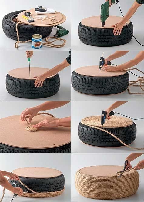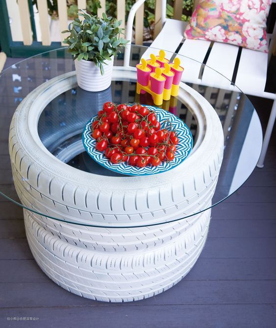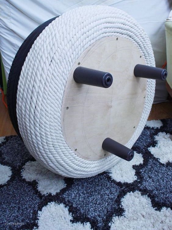 即便你不想用麻绳也是可以做的,叠上2个轮胎,上面放块圆形玻璃(不要用方形的,有边角容易磕碰受伤),照样可以拿来用。