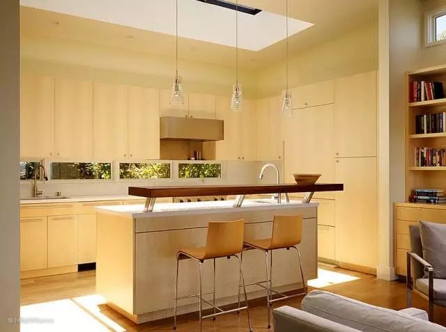 天窗一般都出现在客厅或者有阁楼的卧室里。如果能在厨房做题个大大的天窗,瞬间做饭也会心情舒畅了。因为明亮的环境会让你得想法更加充沛,最好的是,你可以边看风景边做饭,或者晒太阳,或者听雨声。