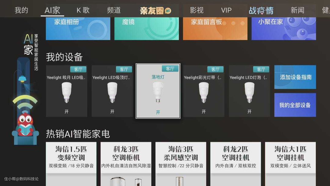 目前其支持的设备也比较多,海信及其子品牌的空调、洗衣机、冰箱、热水器、净化器等通过慧享家APP配对的设备均可用。包括Yeelight的智能灯具产品、涂鸦平台扫地机、晾衣架等产品、OPPLE欧普智能灯具等也同样可以使用。