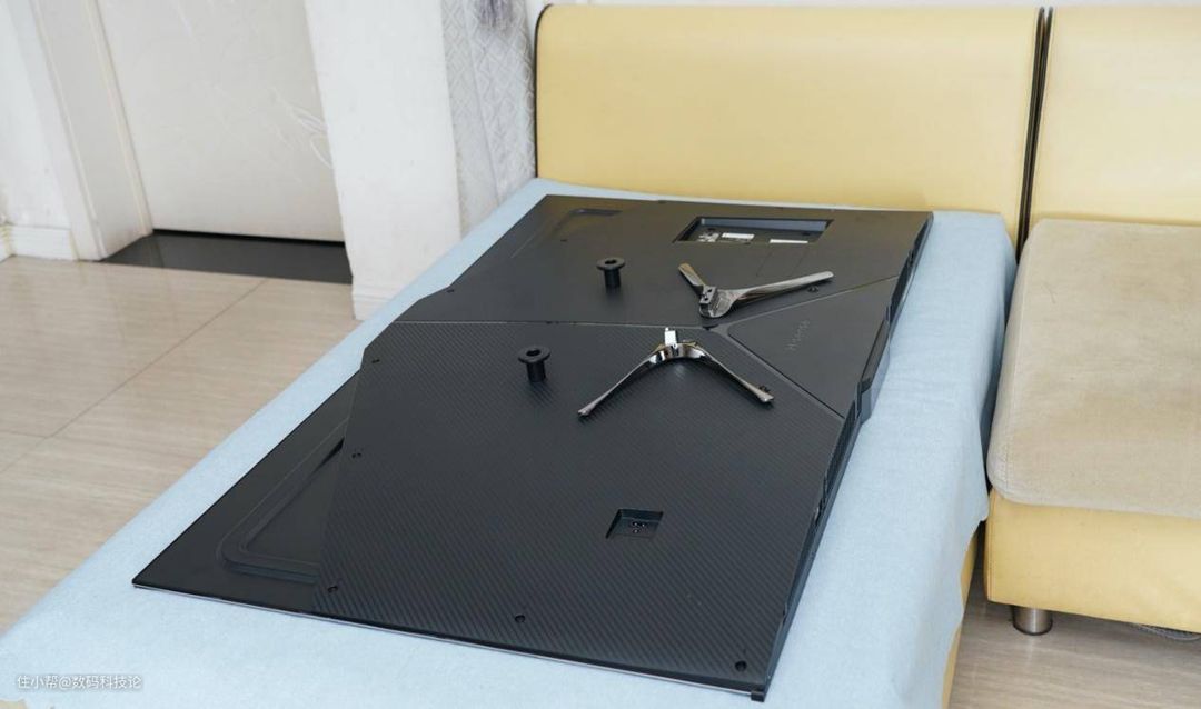 其实这两年由于工作原因,接触的各品牌电视新品不少。总体感觉是,主打网络电视的品牌电视做得都很轻,给人一种塑料的低质感。而传统品牌一般都做的比较结实,这款55英寸的海信55E8D ULED量子点电视尺寸1231x715x74mm,净重19.2kg,加上金属支架、配件以及外包装等等,运输重量达27kg。以至于快递小哥送货上门时还不禁发问:这个电视怎么这么沉?