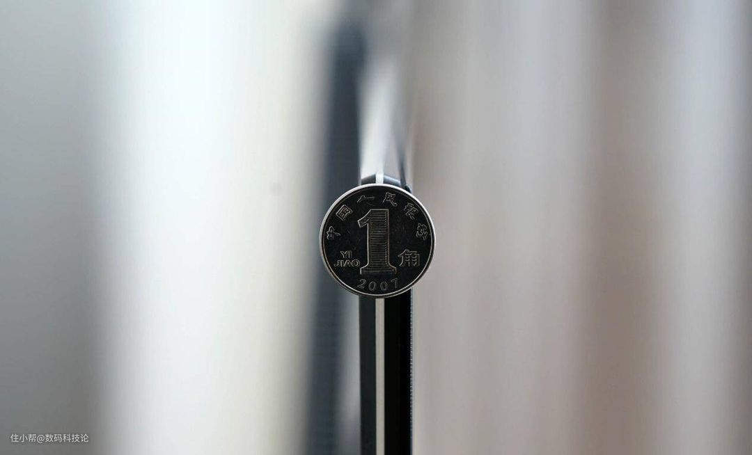 而从侧面看8mm的边缘厚度,也给人一种超薄屏幕的视觉感,下面是与1角硬币的对比图。