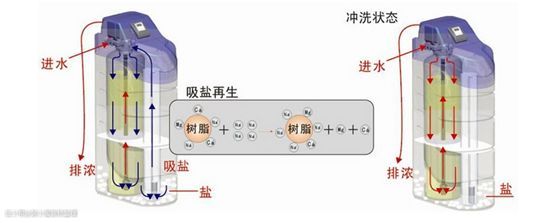 软水机再生还原过程: