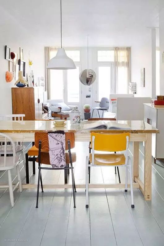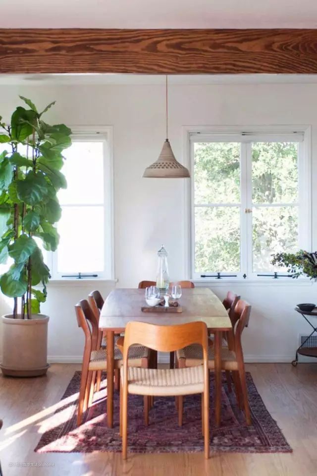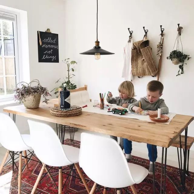 一张长的桌子,可以容纳更多的人。更重要的是,家人即使坐在一起,各占一方,也能彼此互不打扰。