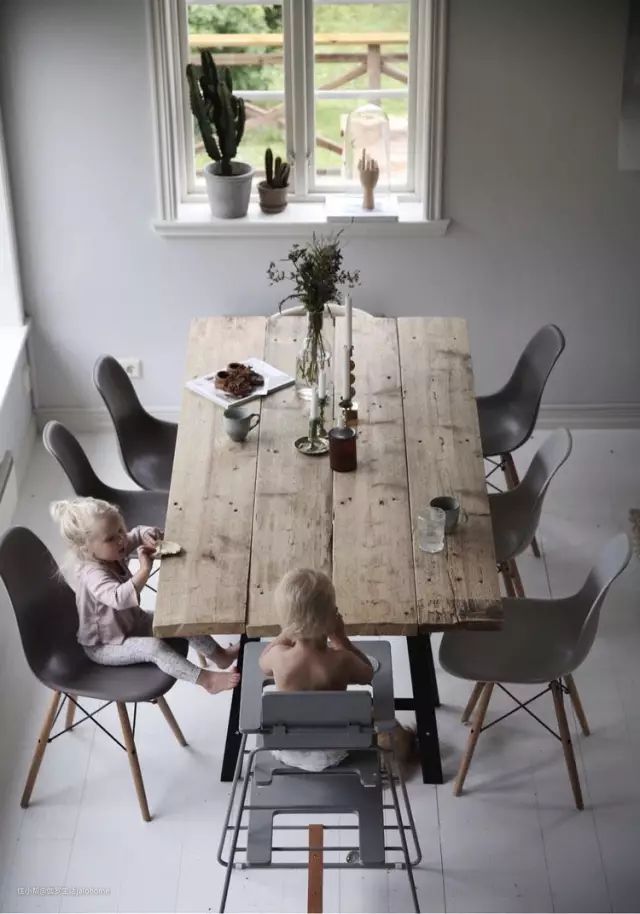 一张大桌,可以就餐,可以工作,还是孩子们玩耍的地方