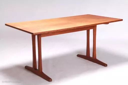 震颤教的桌子一般比较窄小。丹麦著名设计师布吉·莫根森(Borge Mogensen)在1947年根据夏克的支架桌设计了夏克桌(shaker table)。