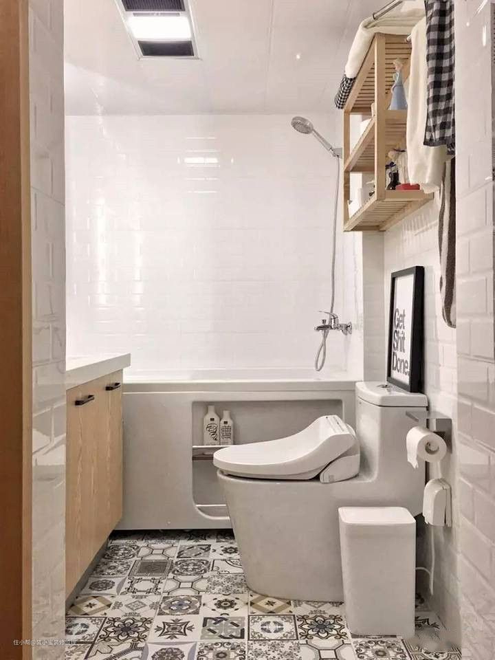 28、卫生间也可以有一面活泼的背景墙,通常在花洒或马桶背后,打破只有长条砖的单调感。