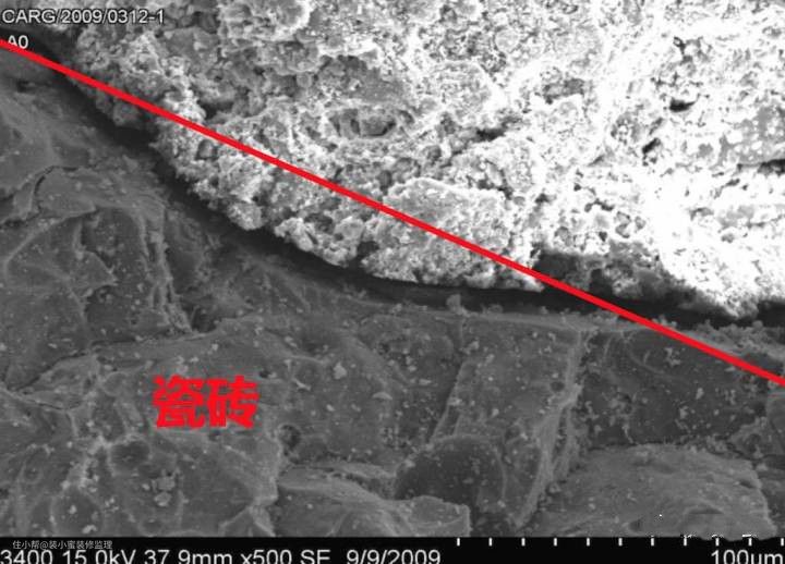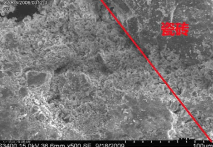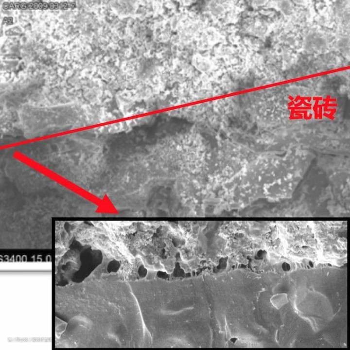 ▲这是水泥砂浆+高吸水率的瓷砖,结合很致密