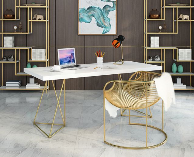 铁艺材质的书房书桌就是整个都是由铁制成的书桌样式。铁艺虽然看起来比较冰