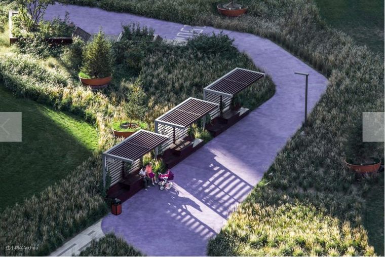 ▶苛刻的覆土种植条件、复杂蓄水排水组织、荷载计算与处理、景观构筑物基础的生根方式、植物材料的选择与维护都是值得深入探讨和研究的重点。在思考与处理这些问题的同时,设计师们重新理解和整合对环境、对生活价值的认知,希望通过设计将生活真实的意义还原,建造一座城市里的空中花园,给居住者质朴、原生的自然空间。