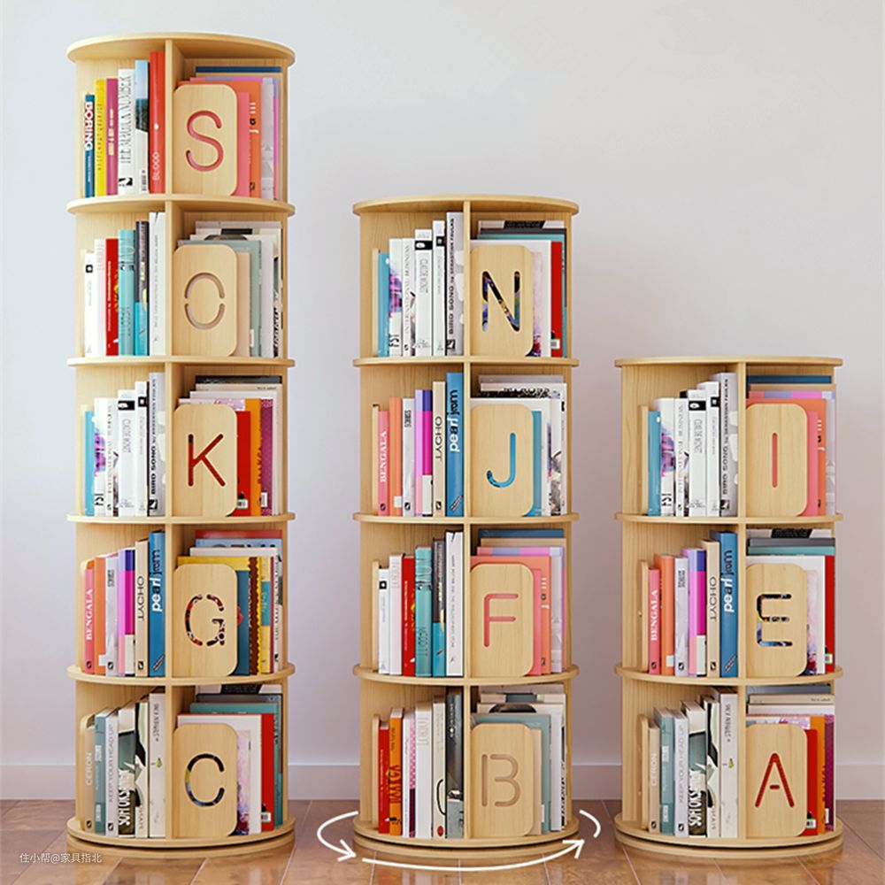 优点:旋转式的趣味设计更能引起孩子的求知兴趣。清新的用色更具活力,与棕色木板搭配透亮光洁。可旋转的造型节省空间,便于摆放和规整。字母分类设计,找书不累。高中低三档书架,让生活更具调理和便捷性。