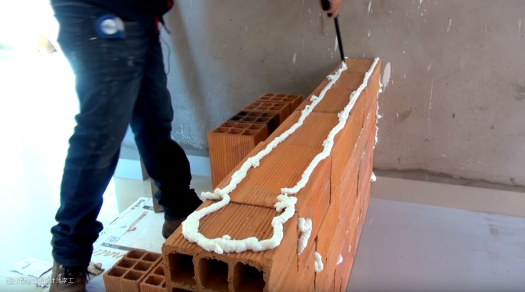 但国外却偏不用水泥砂浆来砌墙,而是利用密封窗户的聚氨酯泡沫粘合剂,打上2圈粘合剂,将准备好的空心砖一垒砌,就成了,这粘合剂砌筑的空心砖墙做隔墙,能保证稳固不倒吗?