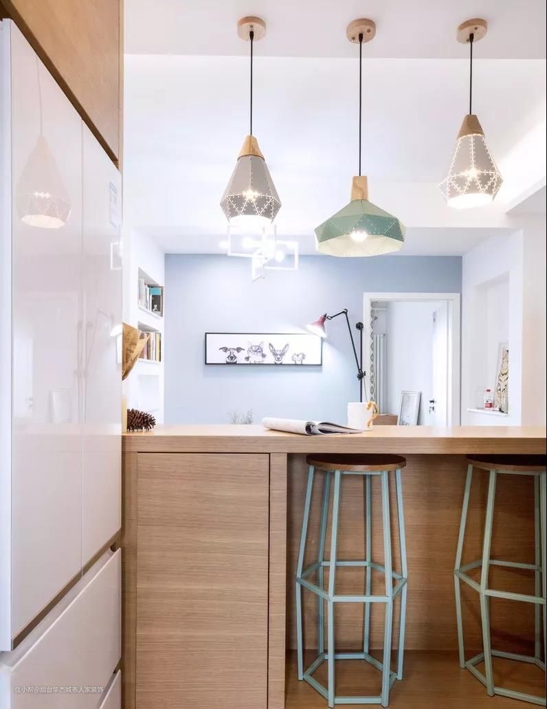 除了推拉门之外,喜欢开放式厨房的朋友则可以选择做个小吧台,它也可以成为用餐区,这样一来不仅貌美而且有效提高了空间利用率。