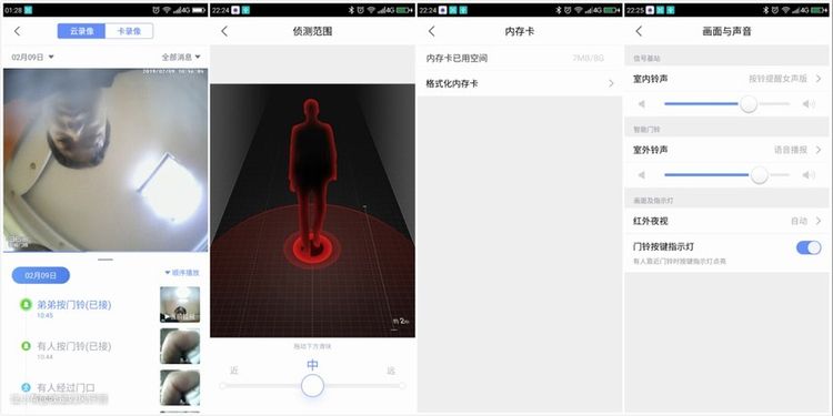 360智能可视门铃采用了200万像素的162度广角摄像头,本地显示效果非常好。可以看清室外的情况的细节。门铃的摄像头经过特殊设计具有全视角监视,两侧具有广角效果但中心区域完全真实还原画面,消除了鱼眼效应,使人像显示没有失真。门铃的摄像头还具有夜视功能在微光的条件下也可以清晰的看到画面。