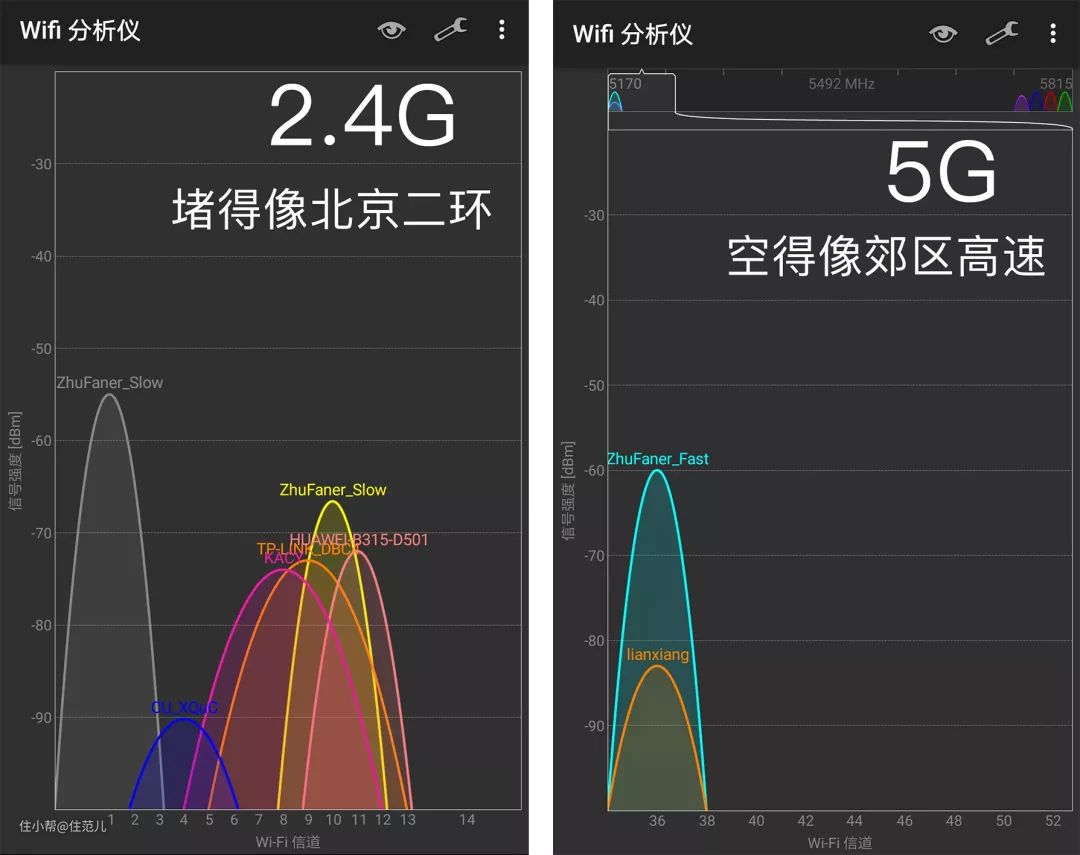 住范儿办公室测的2.4G和5G信道