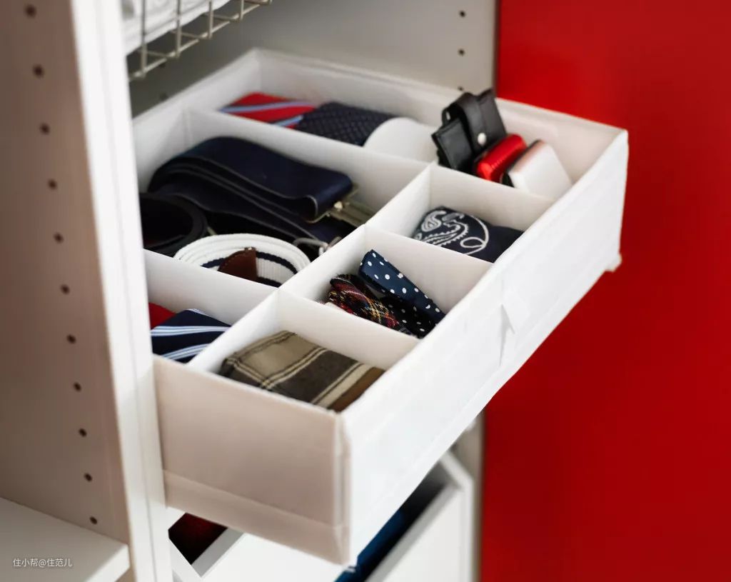 我们也可以利用它放皮带、领带、丝巾、袜子、内衣、手包,避免浪费大抽屉的高度。
