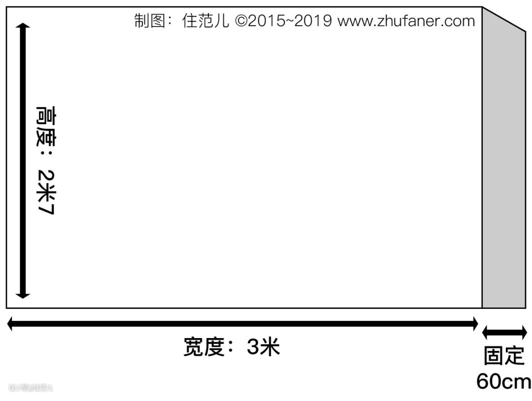 正常衣柜的深度都是60cm,如果定制,强烈建议到顶,那么其实需要决定的,只有衣柜的宽度(长度)。