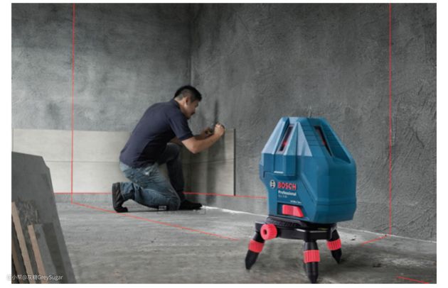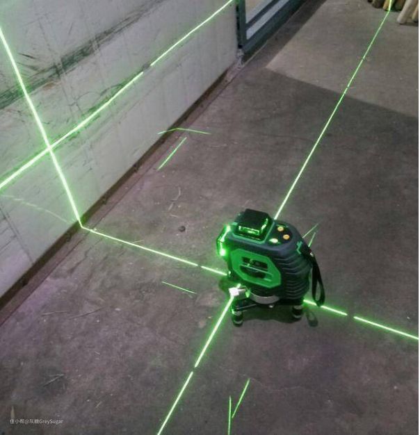 这个大家可能看到比较少一些,它的原理和红外测距仪相似,在墙面地面天花板上投射水平十字激光线,检查结构是否垂直,检查瓷砖是否规整,角度尺的升级版本吧。