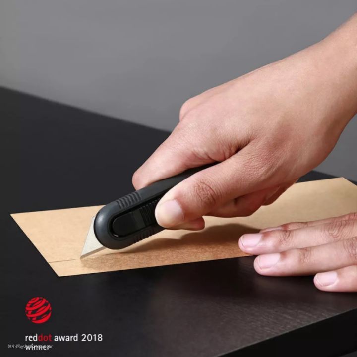 但是使用感上,网路上不少小伙伴吐槽手柄握持不太顺手,以及“安全刀”(就是美工刀)在使用的过程中需要通过推动刀柄上的推手,其刀片才会露出。而松开推手,刀片就会自动收回到手柄里,这个设计真的很费力不讨好。