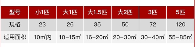 空调大小与面积的对应关系