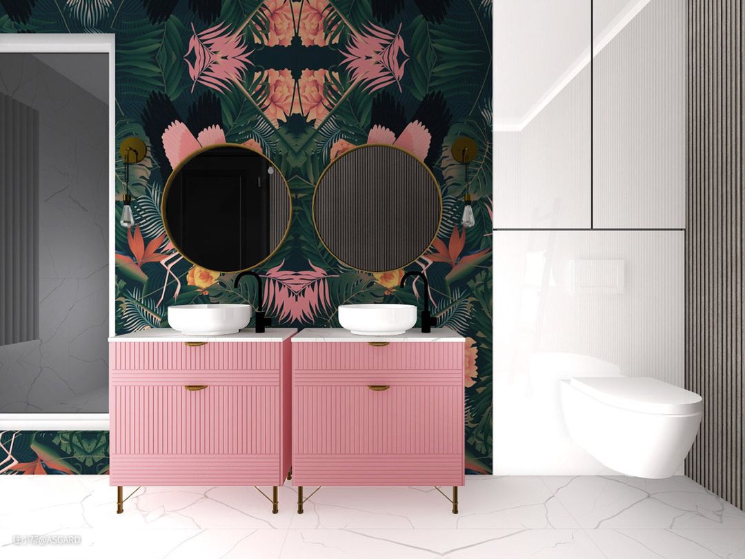 演出中只能有一颗或两颗星星。仅将一个粉红色的英雄角色放到单色设置中即可显示出一流的效果。双重洗手盆上充满活力的粉红色盆具有相同的效果。