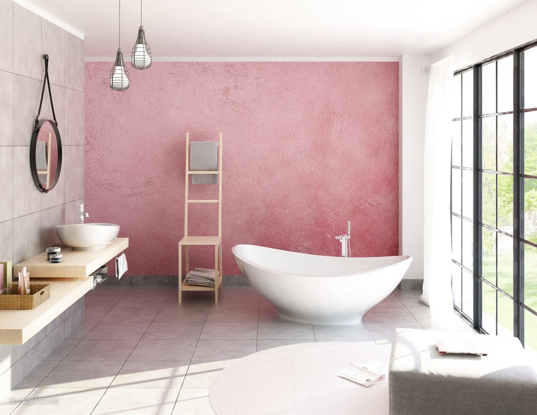 在上面切一个混凝土。您已经购买了浴室系列中每件粉红色的东西,但是现在呢?将粉红色的元素放在原始的灰色混凝土房间中,可立即将所有项目转换为即时的工业时尚。