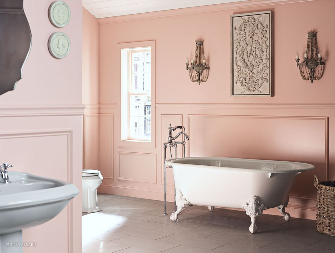 走出安全区,给大胆的鲑鱼粉色浴室墙面刷上油漆…