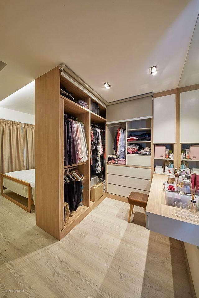 女孩子都希望能有个属于自己的化妆间,这样每天在家就能画个美美的妆出门了!可化妆间究竟摆放在哪里合适呢?我觉得是卧室!例如像下面这位业主家,直接在卧室用柜子隔出个2㎡的化妆间。