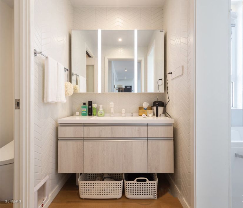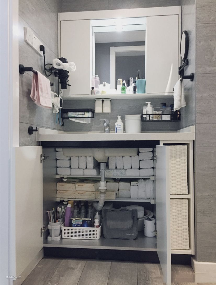 真正实用的浴室柜,是半封闭式半开放的状态,有隐藏式收纳不常用的物品或者是囤货,但也有空间放置常用的物品。这样才能做到一个久住不乱的效果。