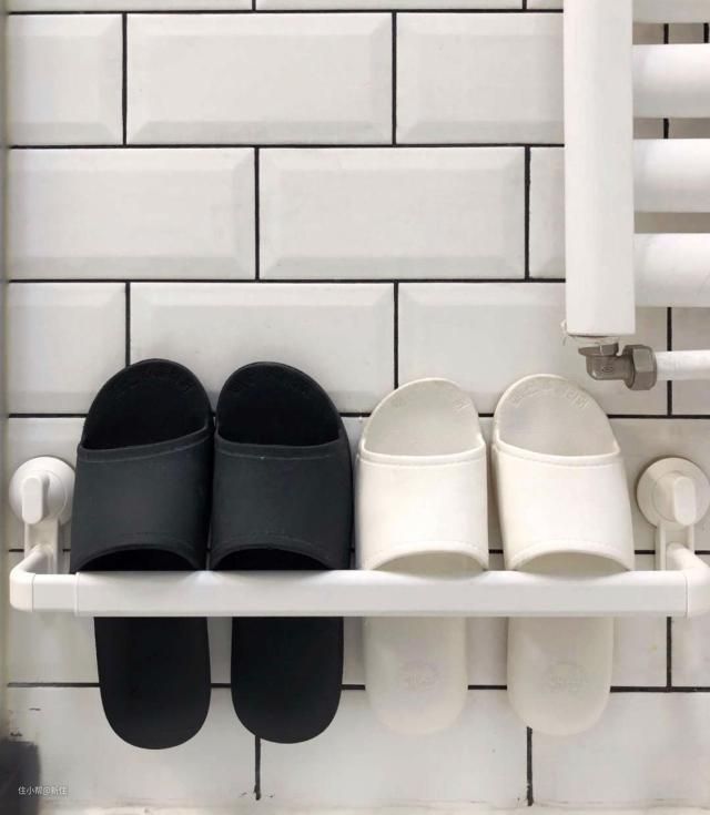 卫生间拖鞋壁挂收纳是目前很多人喜欢的方式,所以壁挂的拖鞋架也就成了网红用品。不少家居达人推荐用宜家的毛巾架来收纳,实际上多双放置后,承重效果非常不好。