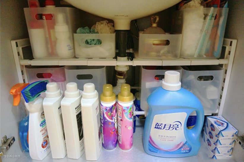 日本主妇喜欢用浴室柜置物架来收纳卫生间的杂物或者清洁剂等等。