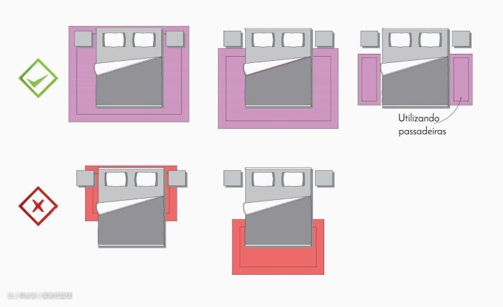 地毯尺寸和空间大小以及家具尺寸都有着密不可分的关系。在客厅,地毯的尺寸一般以茶几为中心至沙发相隔区间的行走量来决定;在卧室,则以床尾为中心的四周行走量来决定。