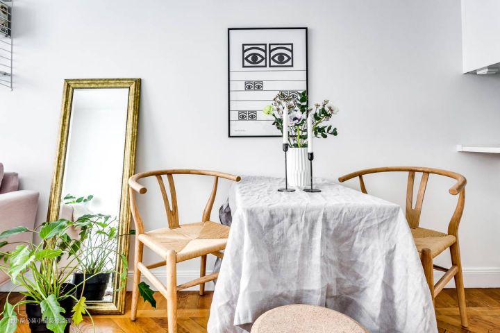 因北欧风追求自然生态,绿植是必不可少的装饰。在品种选择上,以高大型绿叶为主,形成鲜明的大色块,给白调为主的空间带来生机。