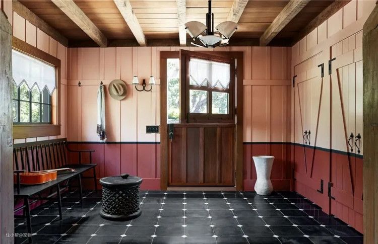 但是墙壁却做了蜜桃粉拼接酒红色,给人暖暖的质感。
