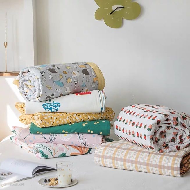 优点:纱布被是一种天然棉布,非常轻,既保暖又透气,春夏秋冬都能用。且纱布被易清洗易干,可以减少螨虫的滋生,且大部分纱布被都不易掉毛。特别是对于婴幼儿来说,纯天然的纱布材质柔软舒适,不易伤害宝宝的皮肤。