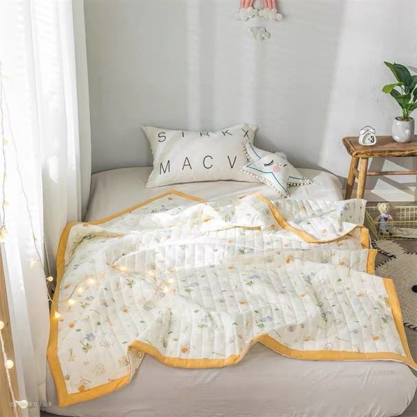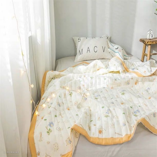 纱布被子是采用双层有机纱布材质,无捻工艺。它的吸汗效果好,柔软性、舒适性都不错,并且天然环保!同时纱布被很适合婴幼儿这种幼嫩的肌肤使用,对身体不会有任何的危害。这款纱布被采用纯色包边配卡通图案设计,使被子瞬间变得可爱充满童趣。