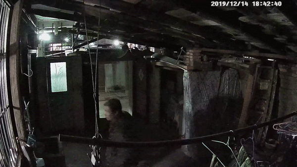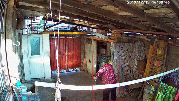 这是老妈早晨清扫院子地板的画面,由于正好处于监控预警区域,所以手机端收到了画面变动的推送信息,并记录下目前劳动的一幕画面。