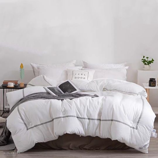 优点:羽绒被保暖性高、弹性强、蓬松度高,而且具有轻、柔、软的特点。同样体积的被子,羽绒被的重量最轻,约为棉被的1/3,羊毛丝被的1/2。同时具有其他保暖材料所不具备的吸湿发散的良好性能,被称为“会呼吸的被子”。