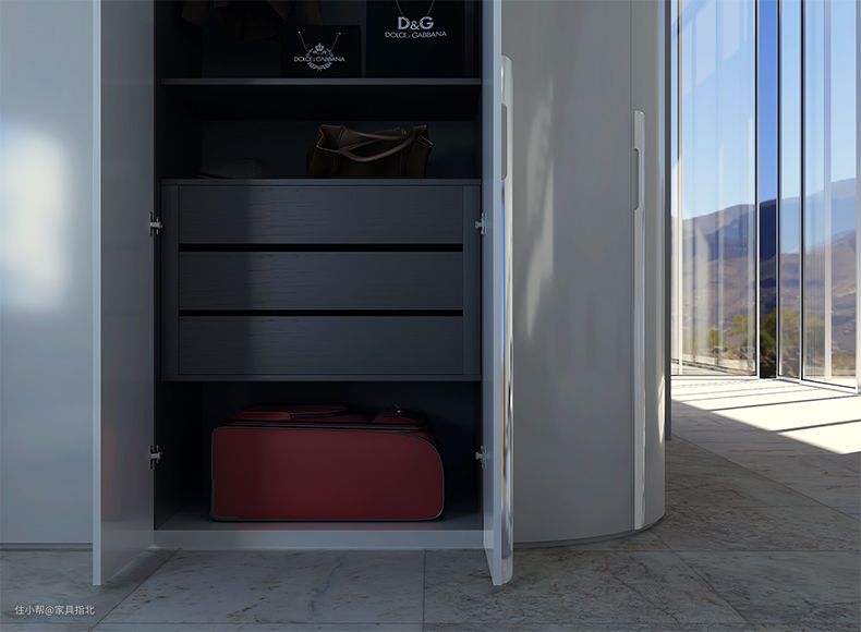 风格搭配:充满了未来感和科技感的一款设计,让你的家庭装修更加的具有独特的魅力。远离繁华的都市生活,将个性与自然相结合展现非同一般的灵感风尚。如果你的装修想要创造力,这款衣柜一定可以夺得你的好感